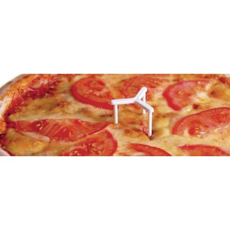 Les séparateurs à pizzas s'insèrent dans les cartons pour les pizzas à emporter, et évitent ainsi que la garniture ne colle au couvercle lorsque les cartons sont empilés.