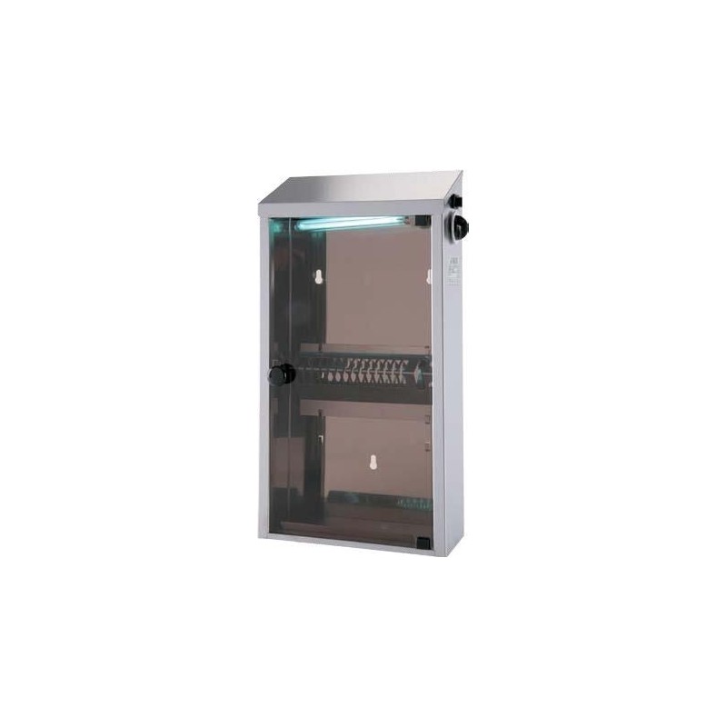 Cette armoire à couteaux de stérilisation dispose d'un tube génère des rayons ultraviolets germicides qui transforment l'oxygène en ozone, tuant ainsi les bactéries. Les rayons UV (254 nm) agissent comme germicide détruisant efficacement les bactéries.