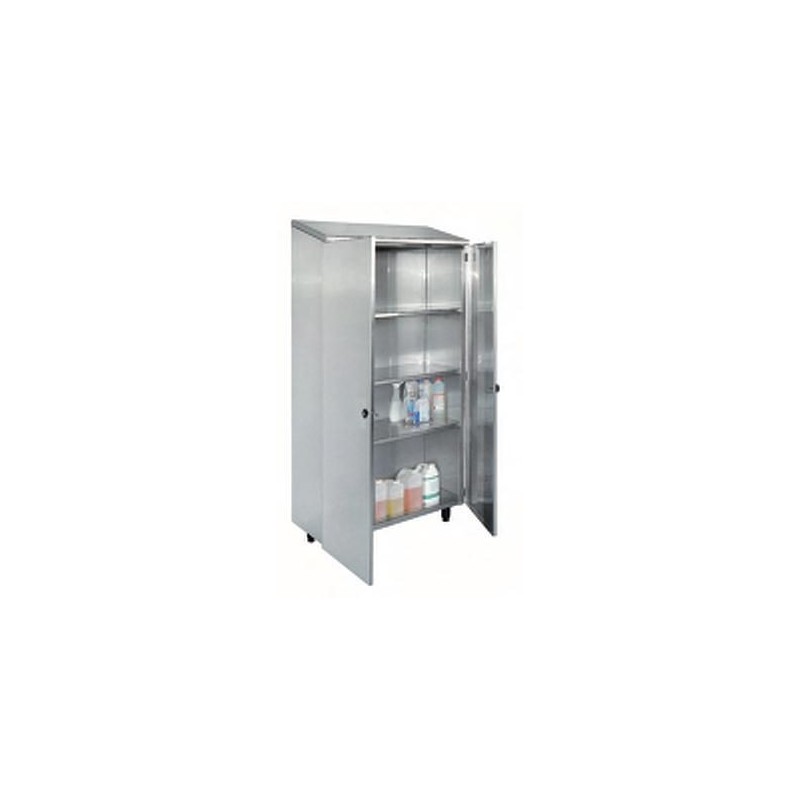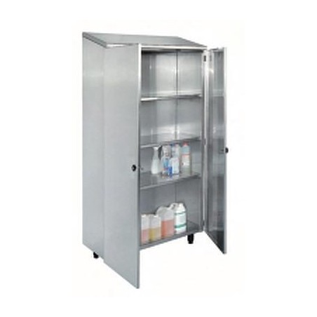 Pour une meilleure stabilité et rigidité, cette armoire possède deux portes battantes doublées. Dans cette armoire haute, vous pouvez mettre 1 ou 2 étagères à l'intérieur. La charge maximale par étagère est de 50 Kg.