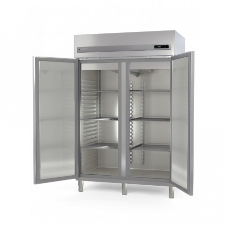 Armoire GN2/1 emboutie - Gamme classic - Température positive (-2°/+8°C) - Capacité 610 + 610l - 1 porte pleine - Extérieur et interieur en inox AISI-304 18/10 (sauf partie arrière) - Côtés emboutis isolation épaisseur 85mm - Porte emboutie - Evaporateur anti-corrosion et compresseur hermétique ventilé - Thermostat électronique avec affichage digital - Evaporation automatique des eaux de dégivrage - Panneau de commande relevable pour faciliter l'accès au groupe - Eclairage intérieur LED - Serrure en standard - Pieds inox réglables de 135 à 200mm - Ambiance 43°C - Dotation : 3 clayettes GN2/1 inox