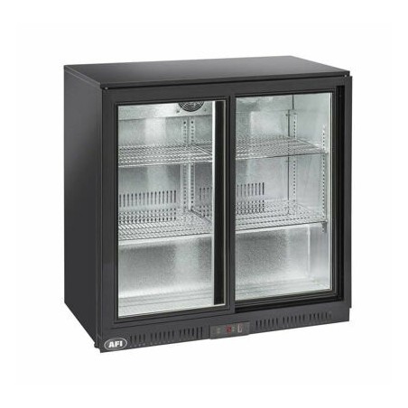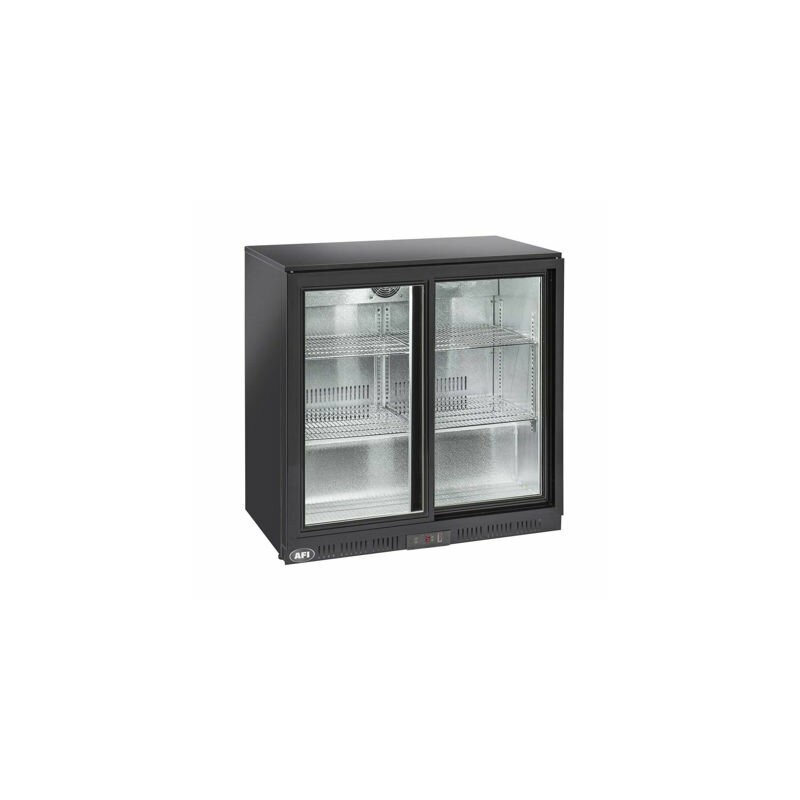 - Arrière-bar 2 portes vitrées coulissantes, classe climatique 4, face externe acier laqué noir et face interne en aluminium. Idéal pour une conservation entre +1°C et +10°C. Gaz réfrigérant R600a. Arrière-bar avec évaporateur à tubulure intégrée et avec un système de refroidissement assisté par ventilateur. Cet arrière-bar est constitué d'une isolation cyclopentane (40 mm par côté), d'un thermostat numérique, d'une porte à fermeture automatique, d'un joint d'étanchéité amovible, d'une lampe LED interne horizontale et de pieds réglables. Pour une sécurité optimale, cet arrière-bar se compose également d'un verre de sécurité trempé tempéré et d'une serrure montée de série. Cycle de dégivrage automatique par arrêt du compenseur.