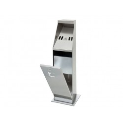 Le cendrier inox professionnel sur colonne dispose d'un capot frontal basculant pour vider le cendrier. De plus, ce matériel est muni d'une serrure.