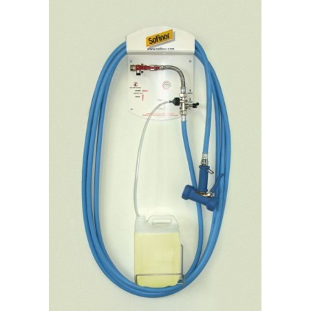 Cette centrale de nettoyage et de désinfection vous permettra de satisfaire aux conditions d'hygiène en cuisine en restauration. Cette centrale de nettoyage produit automatique le dosage souhaité entre le produit désinfectant et l'eau. Avec son système venturi lavage-rinçage et son tuyau long de 15 mètres, cet appareil de nettoyage de cuisine vous permettra de maintenir une excellente hygiène en cuisine. Son pistolet anti-choc en acier inoxydable, sa surface anti-tartre et sa vanne anti-pollution assure un travail de qualité et une hygiène irréprochable. Cette centrale de nettoyage et de désinfection e
