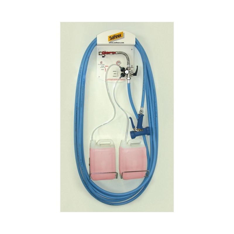 Centrale avec tuyau de 15 m - Système venturi lavage-rinçage avec réglage de 0,5 à 10,90 % (livré avec 14 buses) - Vanne antipollution NF double clapet empêchant tout risque de pollution du réseau d’eau potable -Excellente tenue chimique - Sans risque de corrosion - Surface lisse interne évitant tout dépôt de tartre -Raccordement sur eau froide ou chaude (50°C maximum, pression optimale à 2,5 bars et maximum à 6 bars) -Tuyau (15 m) de qualité alimentaire raccords sertis, tenue de 20 bars à 70°C, résistance aux graisses animales et végétales (coef. de sécurité de 3) - Pistolet antichoc équipé d&rsqu