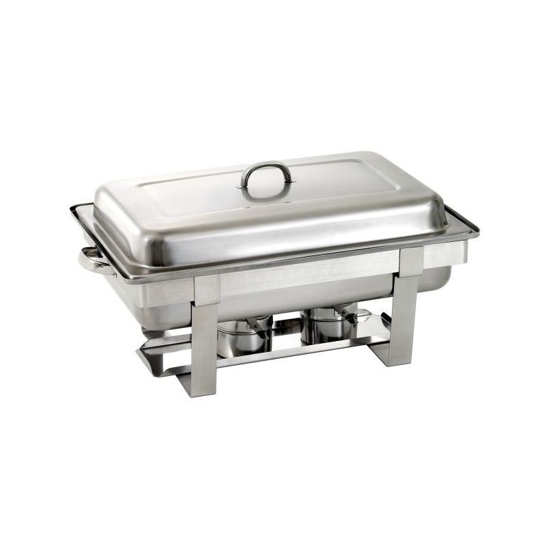 Le chafing dish professionnel conviendra pour des Bacs Gastronormes GN 1/1. De plus, ce matériel en acier inox dispose de 2 supports pour boîtes de fuel ou la possibilité de les remplacer par les plaques chauffantes qui disposent d'un thermostat de sécurité. Ce chafing dish appelé également bain marie, vous permettra de maintenir vos plats toujours à la bonne température. Il est idéal pour les professionnels de la restauration, pour des buffets et les réceptions.