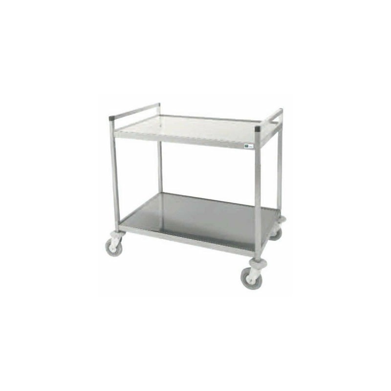 - Chariot de service avec construction robuste en INOX 18/10. Ce chariot à deux étages se compose de deux roues fixes et de deux roues pivotantes.