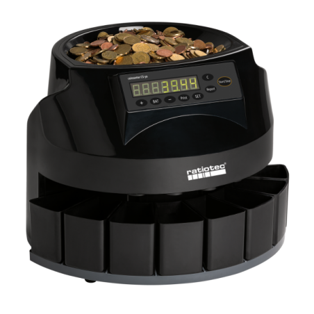 Facile d'utilisation, la compteuse trieuse professionnelle permet de compter et trier 200 pièces par minute. La machine à trier et compter les pièces est équipée d'un système qui reconnait les pièces par leur diamètre pour le tri de celles-ci. La compteuse trieuse professionnelle indique le montant et la quantité de chaque pièces sur son écran.