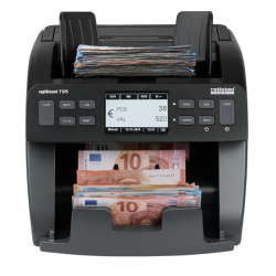 La compteuse T250 a pour capacité de remplissage dans le bac d'insertion 300 billets. Cependant, vous pouvez ajouter des liasses de billets en continu pendant le fonctionnement de la compteuse professionnelle. Pas besoin de trier les billets, la machine à compter reconnait la valeur des billets insérés. Avec la touche "Report", la quantité, la valeur et le montant total s'affichent sur l'écran de la compteuse de billets. Cette machine à billets est équipée d'une fonction de test d'authenticité afin de détecter les faux billets.