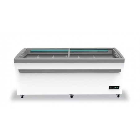 Ce congélateur bahut dispose de deux portes coulissantes.