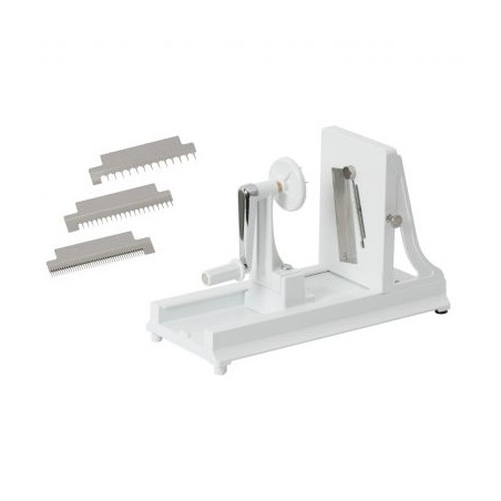 Ce coupe-légumes japonais vous permet de couper les légumes en spaghettis, tagliatelles et cheveux d'ange. Livré avec ces trois lames effileuses et interchangeables, les lames ont une qualité de coupe "rasoir".