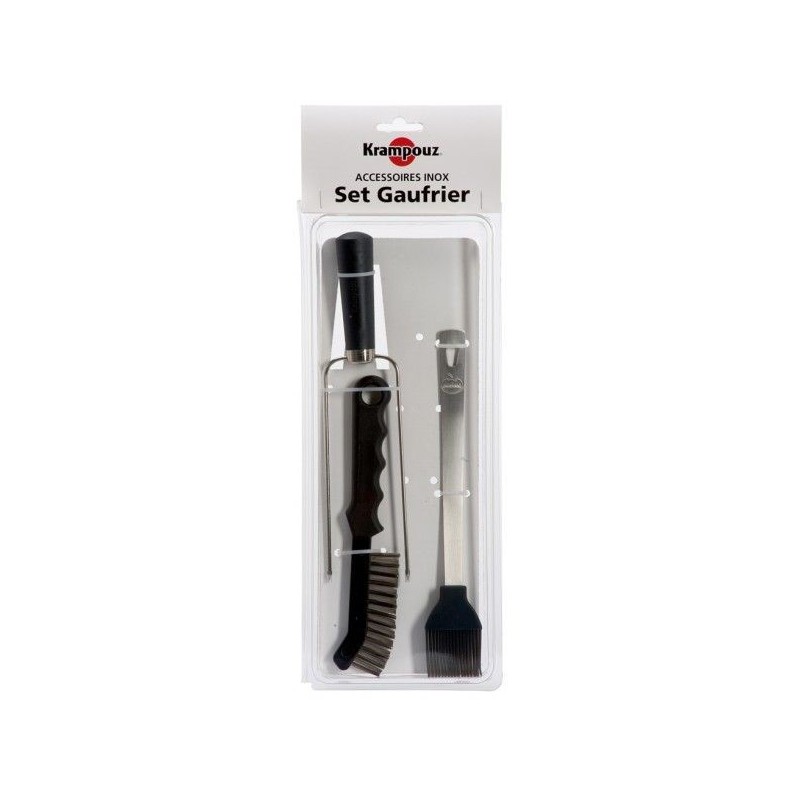 Ce kit pour gaufrier est idéal pour l'entretien de votre gaufrier et la conception de gaufres. La brosse métallique est adaptée pour nettoyer les plaques, le pic est utile pour décoller les gaufres et le pinceau vous servira à graisser vos plaques.