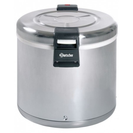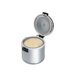 Dans ce chauffe-riz électrique la quantité de riz une fois cuit est de 8.5 kg.Ce chauffe-riz ne cuit pas mais maintien en température du riz déjà cuit.Grâce à son boitier en acier inoxydable et sa cuve en alu, ce chauffe-riz conviendra parfaitement pour un usage professionnel.Le chauffe-riz possède des poignées ultra-grandes.