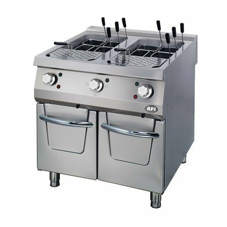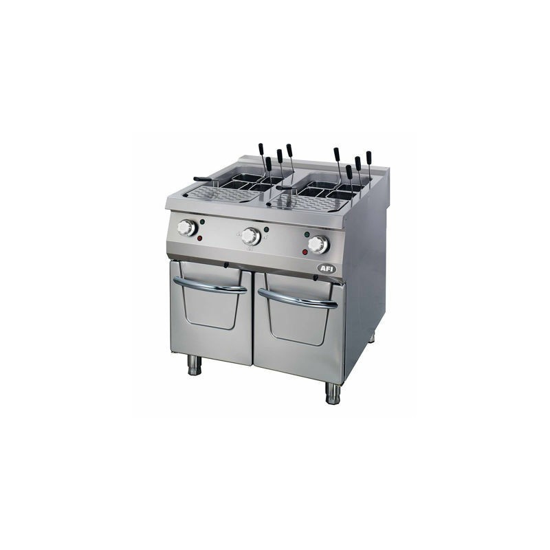 - Cuiseur à pâtes électrique avec dessus renforcé de 2 mm monobloc. La cuve emboutie en inox 304 AISI est constituée d’une seule pièce sans soudure, ce qui facilite le nettoyage, garantit une meilleure hygiène et accroit sa durée de vie.