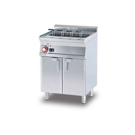 - Ce cuiseur à pâtes électrique triphase se compose d'une cuve GN1/1 de 40L, d'un système de chargement automatique de l'eau avec sensor de niveau et d'un système de vidange au sol