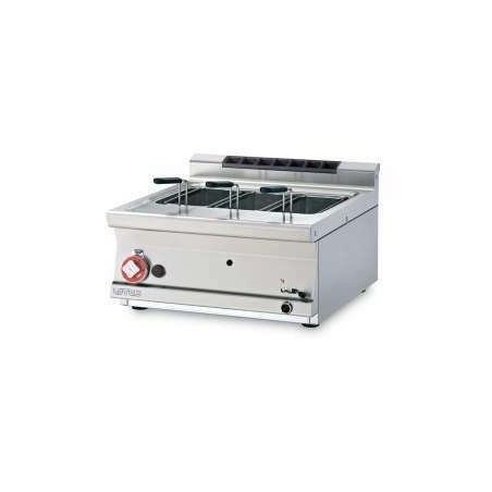 -Cuiseur à pâtes à gaz de 19L avec une cuve de 510x310x180 mm et un robinet de vidange.