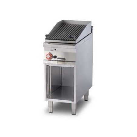 -Ce grill à gaz sur pierres de lave et sur armoire ouverte est équipé d'une grille réglable en acier inox.