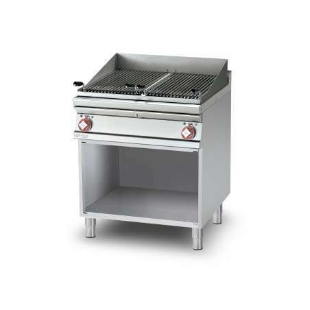 -Ce grill électrique triphase sur armoire ouverte est équipé de deux grilles réglables en acier inox et de deux zones de cuisson.