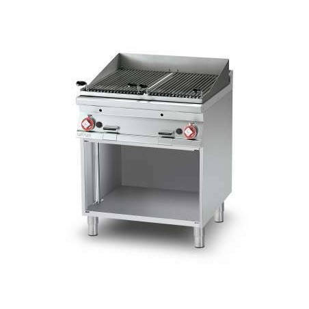 -Ce grill à gaz sur pierres de lave et sur armoire ouverte est équipé de deux grilles en acier inox et de deux zones de cuisson.
