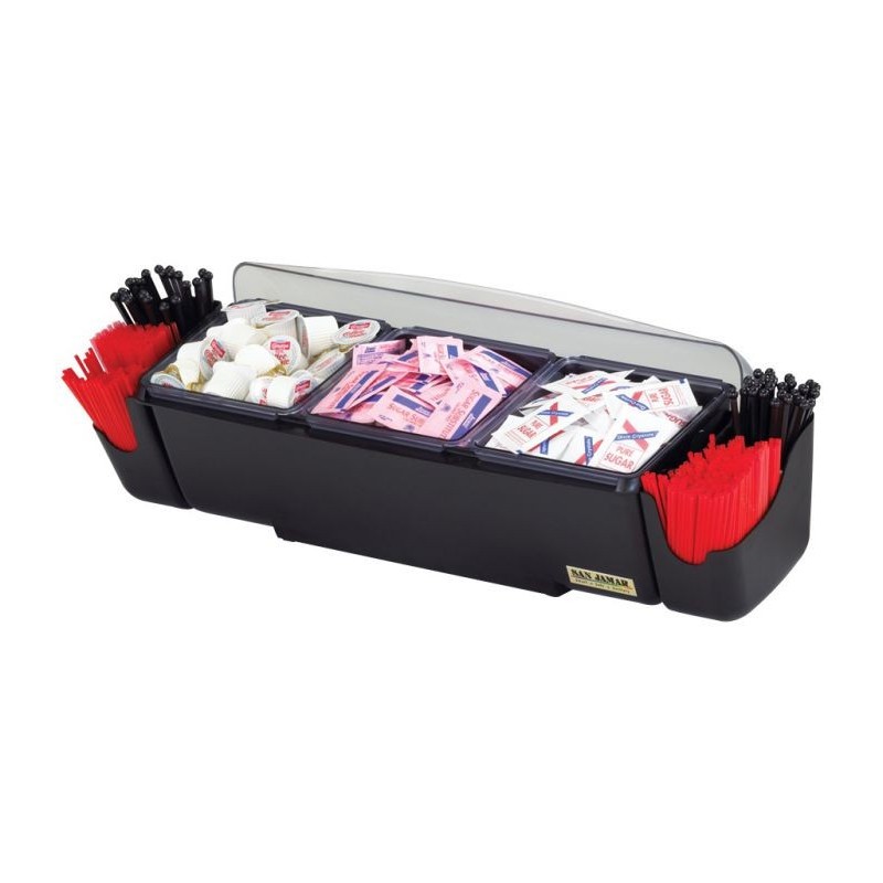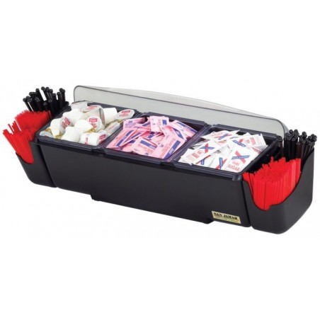 Equipée d'un couvercle translucide en forme de coupole pivotante, la boîte à compartiment professionnelle est fabriquée en matière synthétique noire. Le couvercle en ABS permet un chargement maximal du distributeur professionnel. Cette boîte à compartiments avec poignées est idéale pour les professionnels de restauration comme les bars, les cafés, les restaurants ou hôtels...