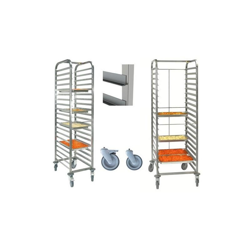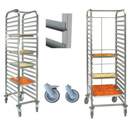 Le chariot inox à glissières est particulièrement adapté pour un usage professionnel en cuisine ou laboratoire traiteur.L'échelle gastronorme est conçue pour stocker ou transporter en toute sécurité les produits.