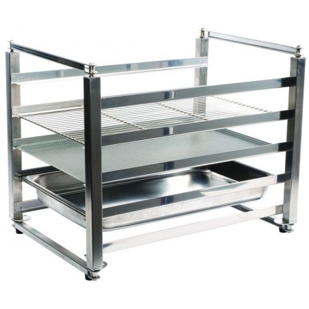 - A poser sur plan de travail- Espace entre niveaux: 75 mm- Capacité: 5 niveaux GN 1/1- Acier inoxydable- Dimensions: L 383 x P 555 x H 448 mm- Dimension repliées : L 890 X P 448 X H 110 mm- Structure mobile repliable : rangement facilité - Systhème de blocage position ouverte ou fermée. - 4 Pieds anti-dérapants