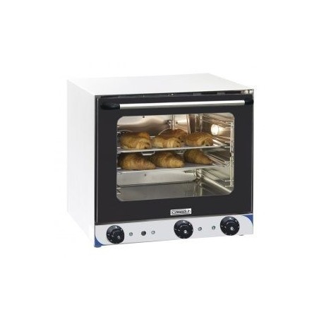 Ce four est entièrement en acier inoxydable avec une porte à double vitrage, un éclairage intérieur et 2 moteurs. Vous pourrez aussi régler la température de 0° à 300°. Grâce à la ventilation d'air chaud vos aliments cuiront uniformément.