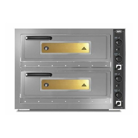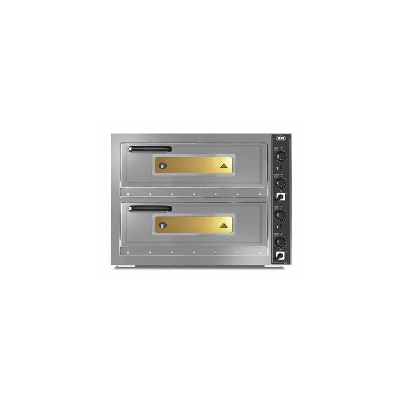 -Four à pizzas électrique avec 2 chambres, conçu pour des pizzas de 30 cm de diamètre. Ce four en intérieur et extérieur galvanisé de 1 mm d’épaisseur minimum, est constitué d’un cadre de porte (1 mm d’épaisseur minimum) et d’une porte de four (1,5 mm d’épaisseur minimum) en acier inoxydable. Sa poignée en bakélite ainsi que la peinture extérieure électrostatique sont conçus pour résister à la chaleur. Les briques de cuisson intérieures en pierres de Chamottes sont également résistantes à la chaleur. Ce four à pizza se compose aussi d’une porte double paroi à ouverture et fermeture facile, conçue de manière à ce qu’elle ne s’ouvre pas pendant le fonctionnement. Sa porte vitrée quant à elle, facilite le contrôle de la cuisson.