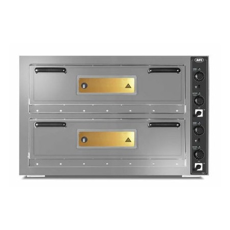 -Four à pizzas électrique avec 2 chambres, conçu pour des pizzas de 30 cm de diamètre. Ce four en intérieur et extérieur galvanisé de 1 mm d’épaisseur minimum, est constitué d’un cadre de porte (1 mm d’épaisseur minimum) et d’une porte de four (1,5 mm d’épaisseur minimum) en acier inoxydable. Sa poignée en bakélite ainsi que la peinture extérieure électrostatique sont conçus pour résister à la chaleur. Les briques de cuisson intérieures en pierres de Chamottes sont également résistantes à la chaleur. Ce four à pizza se compose aussi d’une porte double paroi à ouverture et fermeture facile, conçue de manière à ce qu’elle ne s’ouvre pas pendant le fonctionnement. Sa porte vitrée quant à elle, facilite le contrôle de la cuisson.
