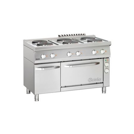 6 plaques électriques -- Avec four électrique à convection GN 1/1-- Armoire neutre -- Dimensions : L 1200 x P 700 x H 850-900 mm -- Puissance : 19,2 kW / 3 NAC 400 V -- 6 plaques : Ø 230 mm, 6 x 2,6 kW -- Poids : 132 kg