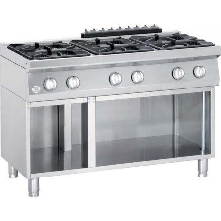 - Bruleur àdouble cercle- Allumage piezo- Puissance: 27,3 kW- Grilles en fonte + bac collecteur amovible sous les cuvettes de bruleur- Zones de cuisson: 3x 5,5 kW et 3 x 3,6 kW- Série: 700 Classic- Nombre de cuisson: 6- Dimension: L 1200 x P 700 x H 850 mm- Poids: 100 Kg