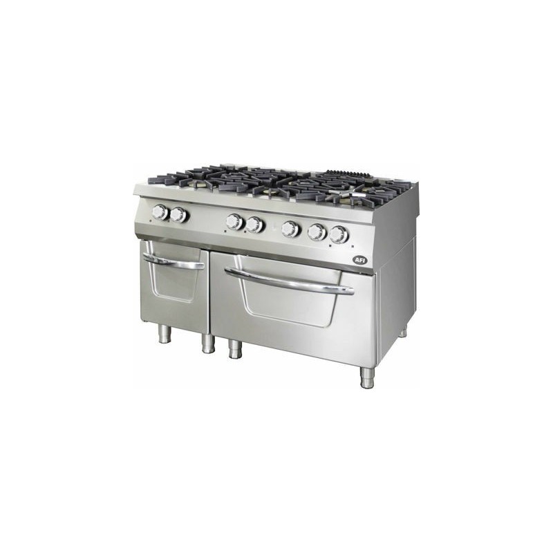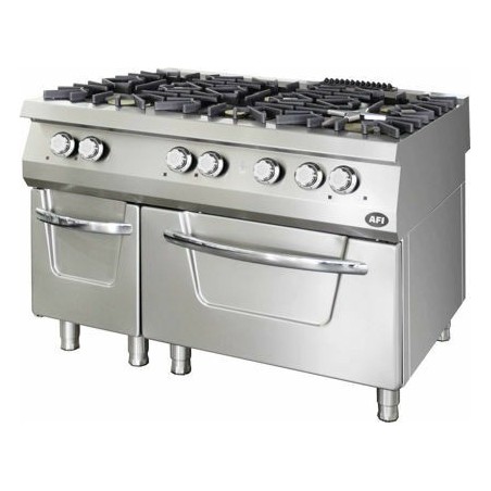 -Fourneau gaz sur four statique électrique avec 6 brûleurs équipés de veilleuse et de sécurité par thermocouple. Les brûleurs sont en laiton pour améliorer la puissance et l’efficacité de la combustion. Toutes les grilles support en fonte ont une finition céramique noire pour une meilleure résistance et ainsi accroitre leur longévité. Ce procédé permet également un nettoyage des grilles au lave-vaisselle et par conséquent une hygiène optimale. Les coins arrondis du fourneau facilitent eux aussi le nettoyage.