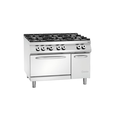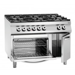 Ce fourneau à 6 feux vifs est doté d'une robinet de gaz pour l'ouverture et la fermeture de l'alimentation de gaz, d'un thermocouple de sécurité pour bloquer l'arrivée du gaz si la flemme s'éteint et d'un thermocouple de sécurité au niveau du four qui bloque l'alimentation électrique en cas de surchauffe.Ce fourneau à gaz avec four électrique professionnel est au gaz butane et propane avec un branchement au gaz de ville.Pour un entretien facile, ce fourneau à gaz et electrique, possède un bac collecteur amovible sous les cuvettes de bruleur.
