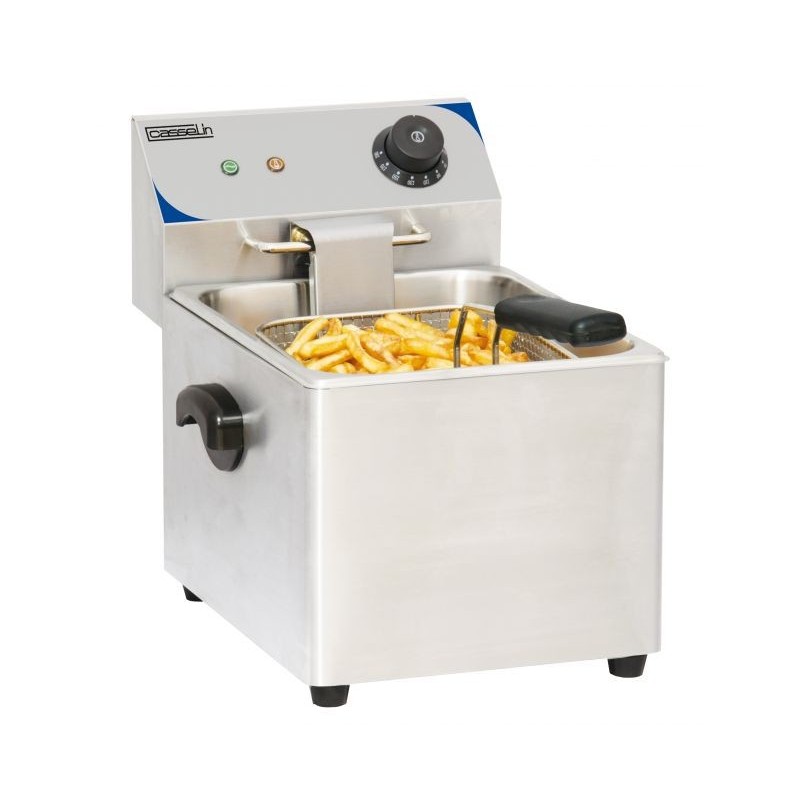Cette friteuse est très pratique pour la restauration rapide avec sa cuve de 4 litres et son thermostat réglable de 60° à 190°.