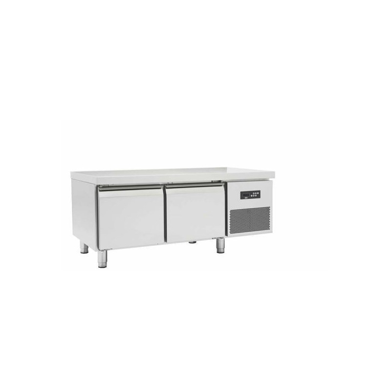 -Soubassement réfrigéré série 600 (gaz réfrigérant R134a) en acier inoxydable et avec des pieds réglables en hauteur. Composé d’un bac de récupération d’eau de dégivrage, d’un panneau de commande digital, contrôle HACCP, d’un système de régulation électronique avec affichage digital de la température et d’une Isolation par injection de polyuréthane sans CFC à une densité de 40-42 kg/m3 et de 50 mm d’épaisseur.