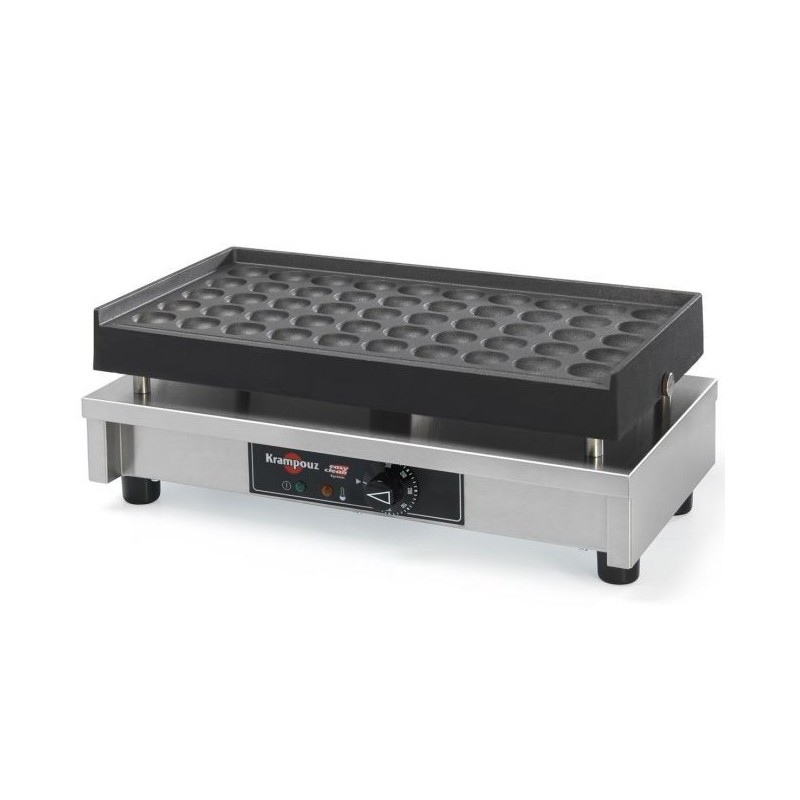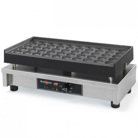 Les Poffertjes sont une préparation néerlandaise traditionnelles à base de pâte. Cela ressemble à de petites crêpes moelleuses que vous pouvez déguster chaudes avec du beurre, sucre glace, ou avec un nappage de chocolat... Cet appareil professionnel permet de faire cuire 50 Poffertjes simultanément. Avec ce gaufrier électrique, vous pouvez déguster sur place ou à emporter les Poffertjes.