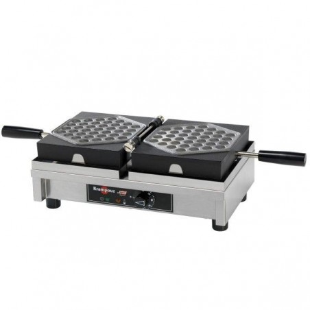 La gaufre Bubble (ou egg waffle) tient son nom des petites alvéoles qui la composent, les fers du gaufrier professionnel Bubble Krampouz sont spécialement étudiés pour obtenir des alvéoles fines. Cette conception permet aussi de réduite la quantité de pâte nécessaire à l'élaboration d'une gaufre. Le gaufrier simple à ouverture 180° permet une parfaite répartition de la pâte sur les deux plaques pour une cuisson homogène sur l'ensemble de la gaufre. Pour une hygiène parfaite, les plaques de ce gaufrier Bubble professionnel se démontent en moins d'une minute grâce au système Easy Clean. Ce gaufrier professionnel vous permet de réaliser une gaufre à la fois. Une fois cuite, la gaufre se roule pour prendre la forme d'un cornet.