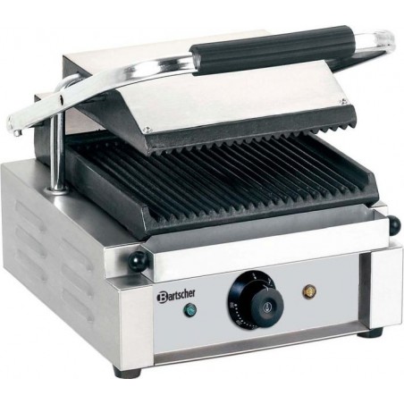 Le grill panini électrique professionnel peut disposer de plaques rainurées ou lisses. Il est muni d'un bac de récupération des graisses et d'un témoin de chauffe lumineux. Il sera idéal dans la restauration pour des snacks ou des stands.
