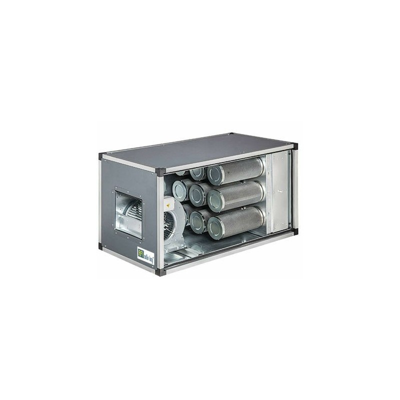 - Ce caisson de filtration des graisses et des odeurs est équipé d’une structure en profilé d’aluminium, de panneaux double paroi en tôle et isolément en polyuréthane expansé, d’un panneau (côté inspection) démontable avec manille et d’un ventilateur à double aspiration avec moteur directement accouplé à la turbine. Il est également constitué de différents types de filtres : des filtres synthétiques avec une efficacité 85% gravimétrie (G3) en classe EN-779, de filtres en grillage et de filtres à charbons actif type E207 à absorption élevée.