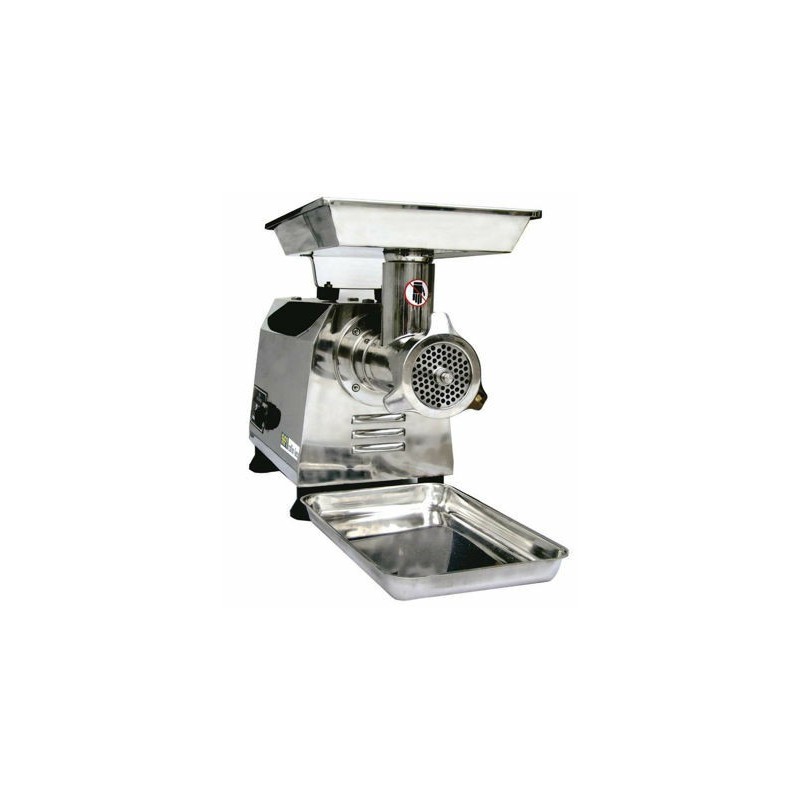 - Ce hachoir tout inox avec certification CE, est prévu pour une utilisation alimentaire en milieu professionnel. Il est conçu pour hacher de la viande de texture la plus épaisse et est équipé d’un interrupteur avant-arrière, d’un bouton reset, d’une plaque et d’un châssis polis. Cet appareil fiable et attractif est en concordance stricte avec les standards d’hygiène. Le design est également conforme à tous les standards de sécurité. Son design compact fait que le hachoir est idéal pour l’utilisation dans des cuisines ouvertes ou devant le consommateur. Aussi, sa taille compacte sans angle aigu ni arête, facilite l’entretien.