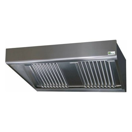 - Cette hotte de ventilation avec éclairage LED est équipée de filtres inox à chicanes, type labyrinthe, de joues latérales à l’horizontale, d’un auvent penté vers le bas et d’un bandeau de façade de 15cm de haut. Elle est entièrement en inox 18/10.