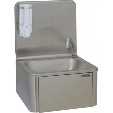 Le lave-mains pro à commande fémorale est composé d'une cuve emboutie rectangulaire, idéale pour le lavage des avant-bras et mains.