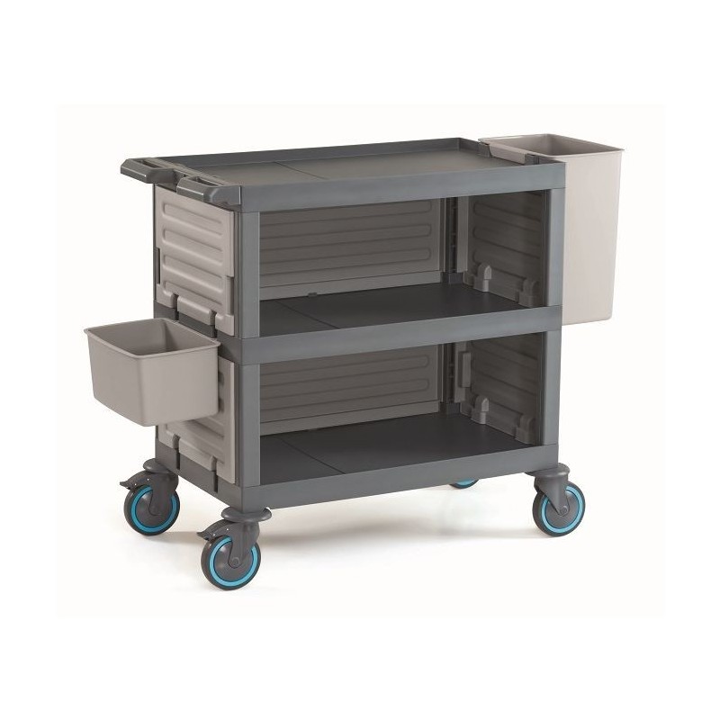 Le chariot de débarrasage et de service professionnel a une charge utile de 120 Kg, 3 plateaux et 4 roues. Il est idéal dans la restauration, pour des cuisines professionnelles.