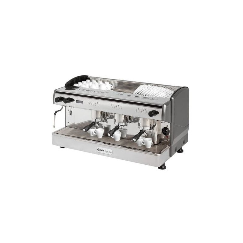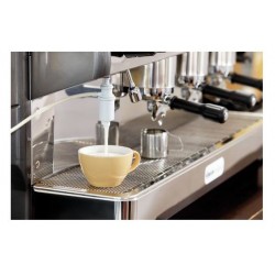 La machine à café professionnelle a une contenance de 17,5 Litres. Ce matériel dispose d'un affichage quadriligne avec compteur de tasse, date, heure et signaux de maintenance ainsi que de 4 programmes de dosages.