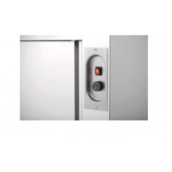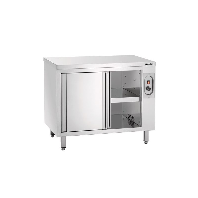 Ce meuble chauffant est avec portes coulissantes et étagère intermédiaire.