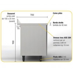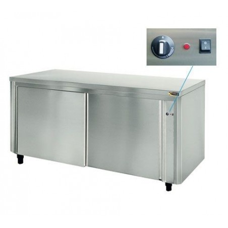 Ce meuble bas possède un réglage de température pouvant aller jusqu'à maximum 85°C.Ce meuble bas central en acier inoxydable de profondeur 700mm s'adaptera parfaitement dans toute cuisine professionnelle, avec ses dimensions de 1400, 1600 ou 1800 mmLe meuble bas chauffant est équipé de portes coulissantes suspensues sans rail inférieur pour éviter tout dépôt indésirable.