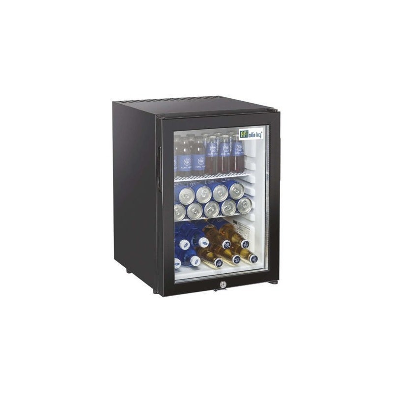Mini frigo bar d'une capacité de 42 boissons, très silencieux avec une porte vitrée réversible, un éclairage LED, des joints de portes clipsés et une serrure. Ce mini frigo bars fonctionne par un système de réfrigération à absorption NH3 (Ammoniac). Il vous permet de conserver vos boissons à une température entre 4°C et 12°C.