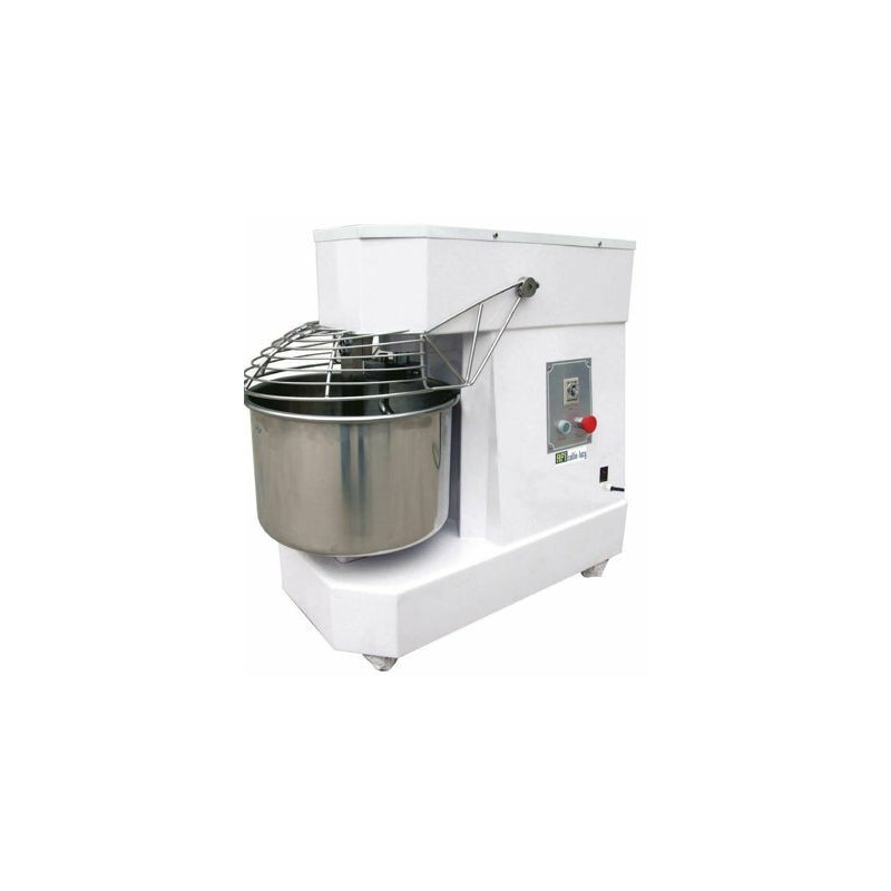 - Ce pétrin à pizzas avec tête et bol fixes est équipé d’un moteur puissant ventilé, d’une minuterie, d’une roulette, d’un bol, d’une spirale et d’une grille de protection en inox. La grille est munie d’un système de sécurité. La structure en acier de l’appareil, est protégé par un vernis résistant à la chaleur.