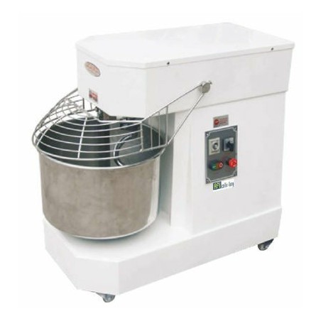- Ce pétrin à pizzas avec tête et bol fixes est équipé d’un moteur puissant ventilé, d’une minuterie, d’une roulette, d’un bol, d’une spirale et d’une grille de protection en inox. La grille est munie d’un système de sécurité. La structure en acier de l’appareil, est protégé par un vernis résistant à la chaleur.