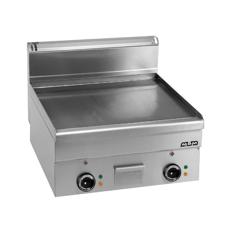 Plan de cuisson de grande épaisseur en acier spécial de haute conductivité thermique. Acier inoxydable AISI 304, Plaque soudée totalement étanche avec zone frontale récupérateur de graisse. Tiroir de récupération des graisses amovible. . Diffusion uniforme de la chaleur. Allumage automatique avec veilleuse et piezzo-électrique. Robinet thermostatique gaz avec sécurité par thermocouple. Chauffage Electrique: Résistance en acier inoxydable incoloy. Réglage de la temperature thermostatée. Diffusion uniforme de la chaleur.