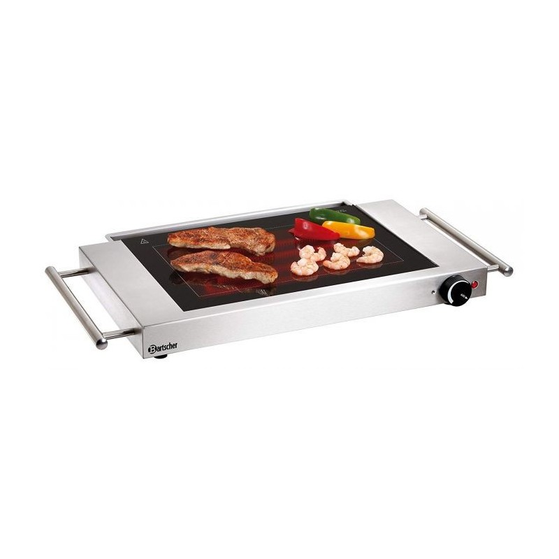 La plaque grill vitro demande très peu de matière grasse.Cette plaque vous assurera une préparation confortable de plats grâce à une surface de cuisson rainurée.La plaque grill vitro est électrique avec un verre Schott Céramique.Entretien et nettoyage facile grâce au bac récolte-graisse qui se trouve sur un côté de la plaque grill vitro.